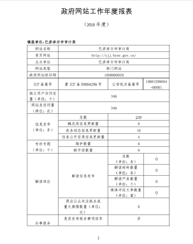 政府网站工作年度报表(2019年度)